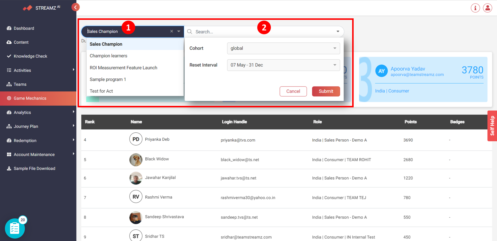2. Filter the Leaderboard by Cohort & Reset Interval.